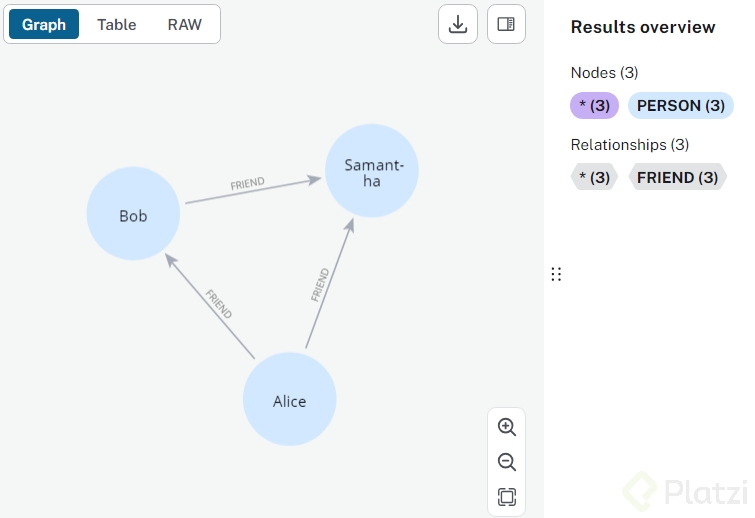 Utiliza match para buscar nodos y sus relaciones, y return para especificar qué datos deseas obtener:
