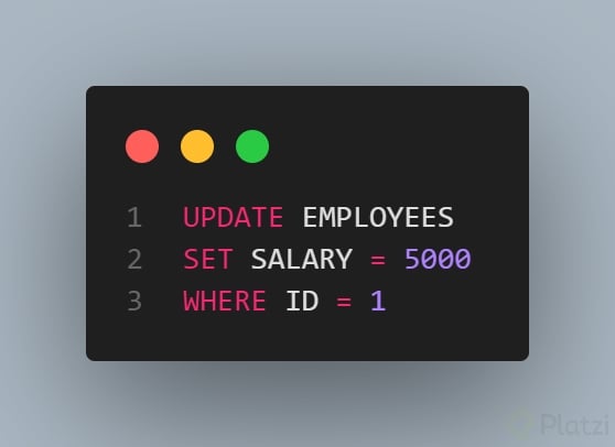 - Utilizas SET para especificar la columna que vas a modificar y el nuevo valor.