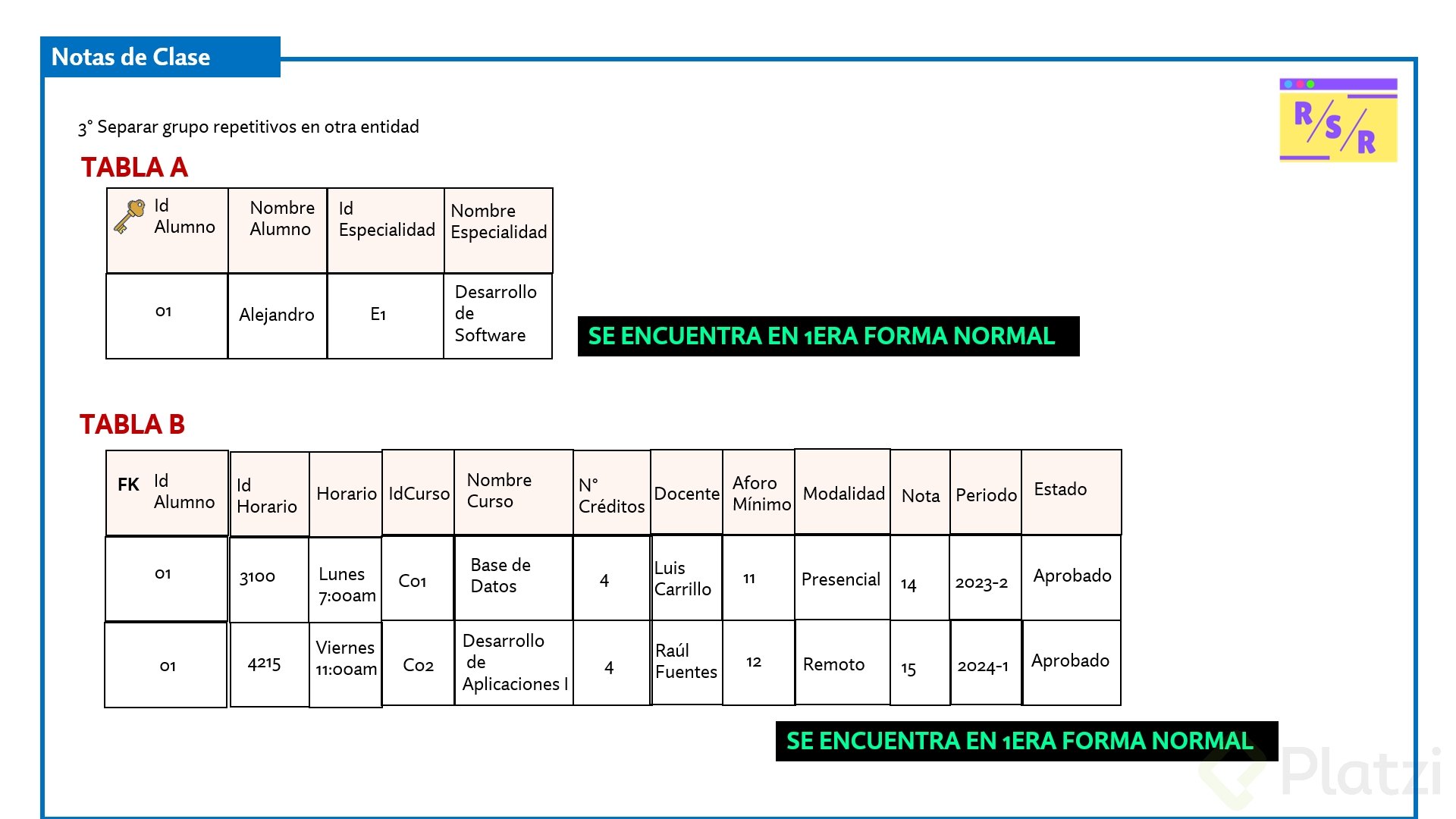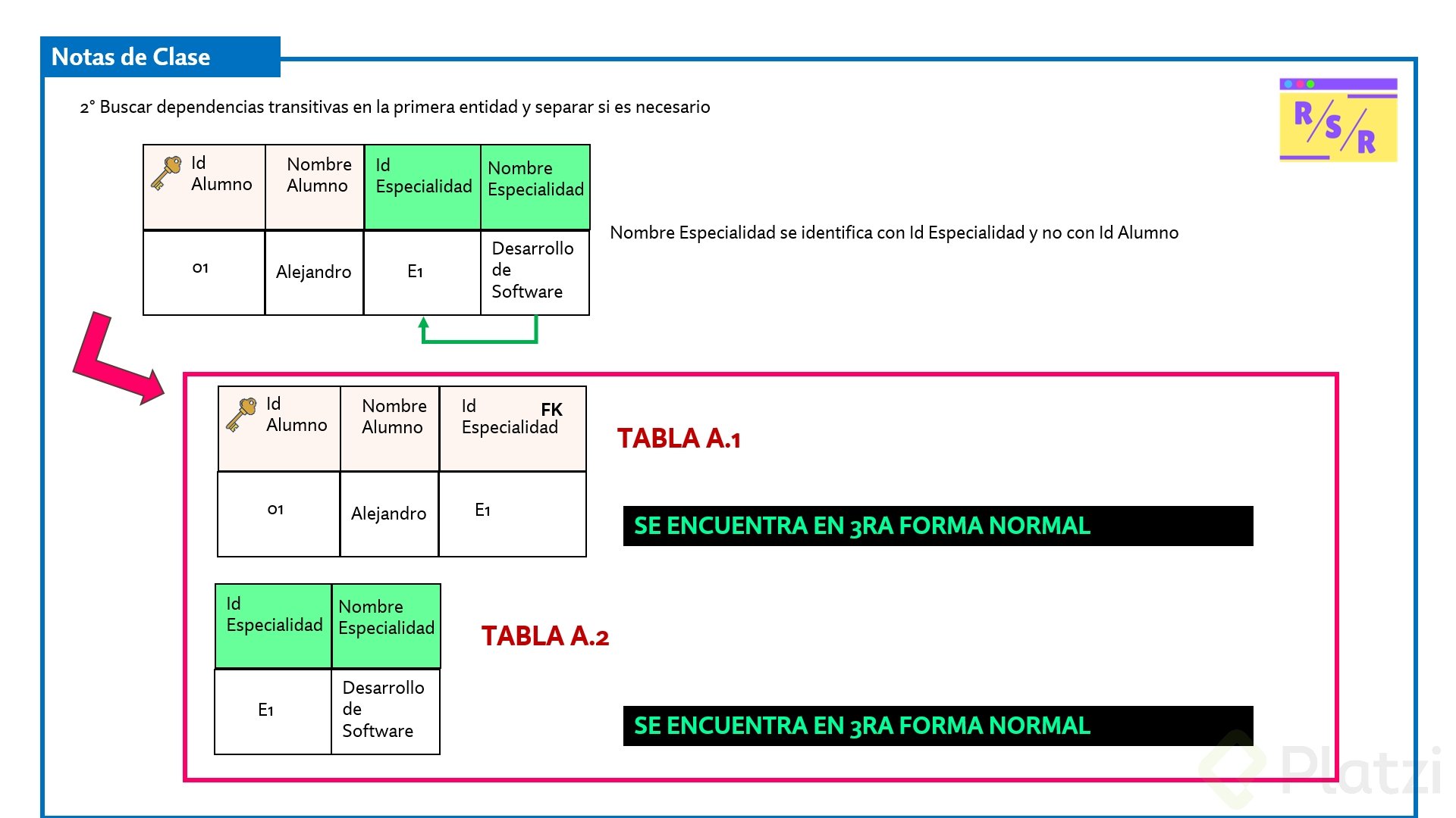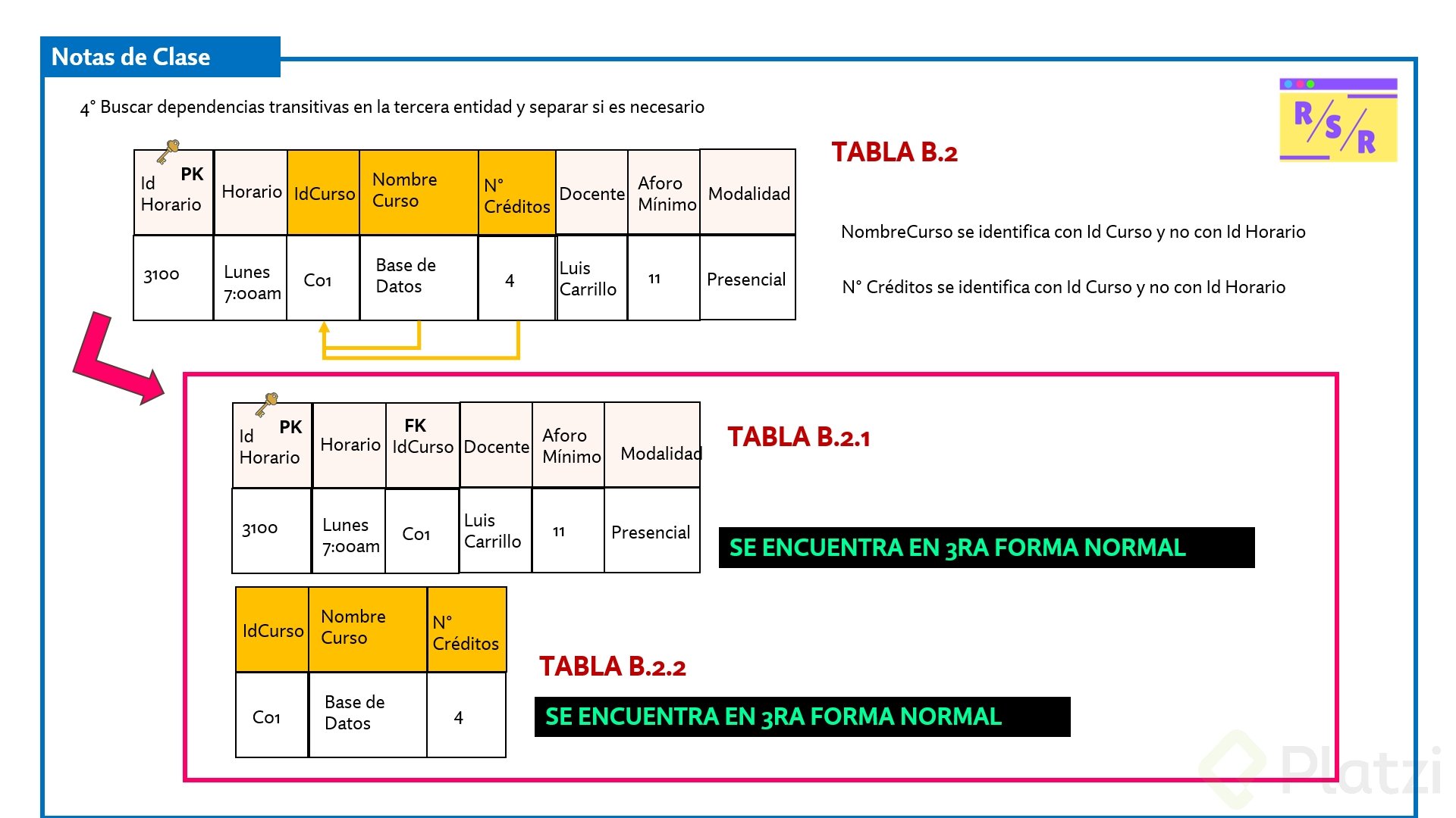 La primera forma normal (1NF) se basa en tres pasos fundamentales: