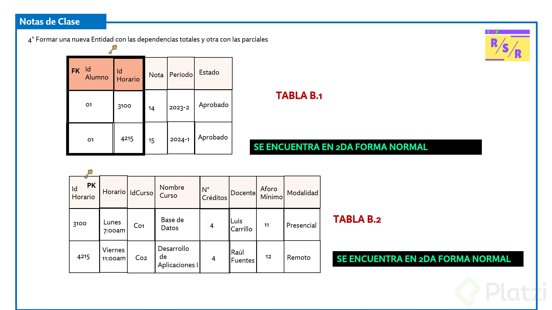 La segunda forma normal (2NF) requiere que todos los atributos no claves dependan de la clave primaria. Para cumplir con 2NF, primero hay que satisfacer los requisitos de 1NF. Esto implica separar información en tablas adicionales y usar claves foráneas para establecer relaciones. Por ejemplo, crear una tabla de cursos separada y referenciarla desde la tabla de estudiantes mediante una clave foránea.