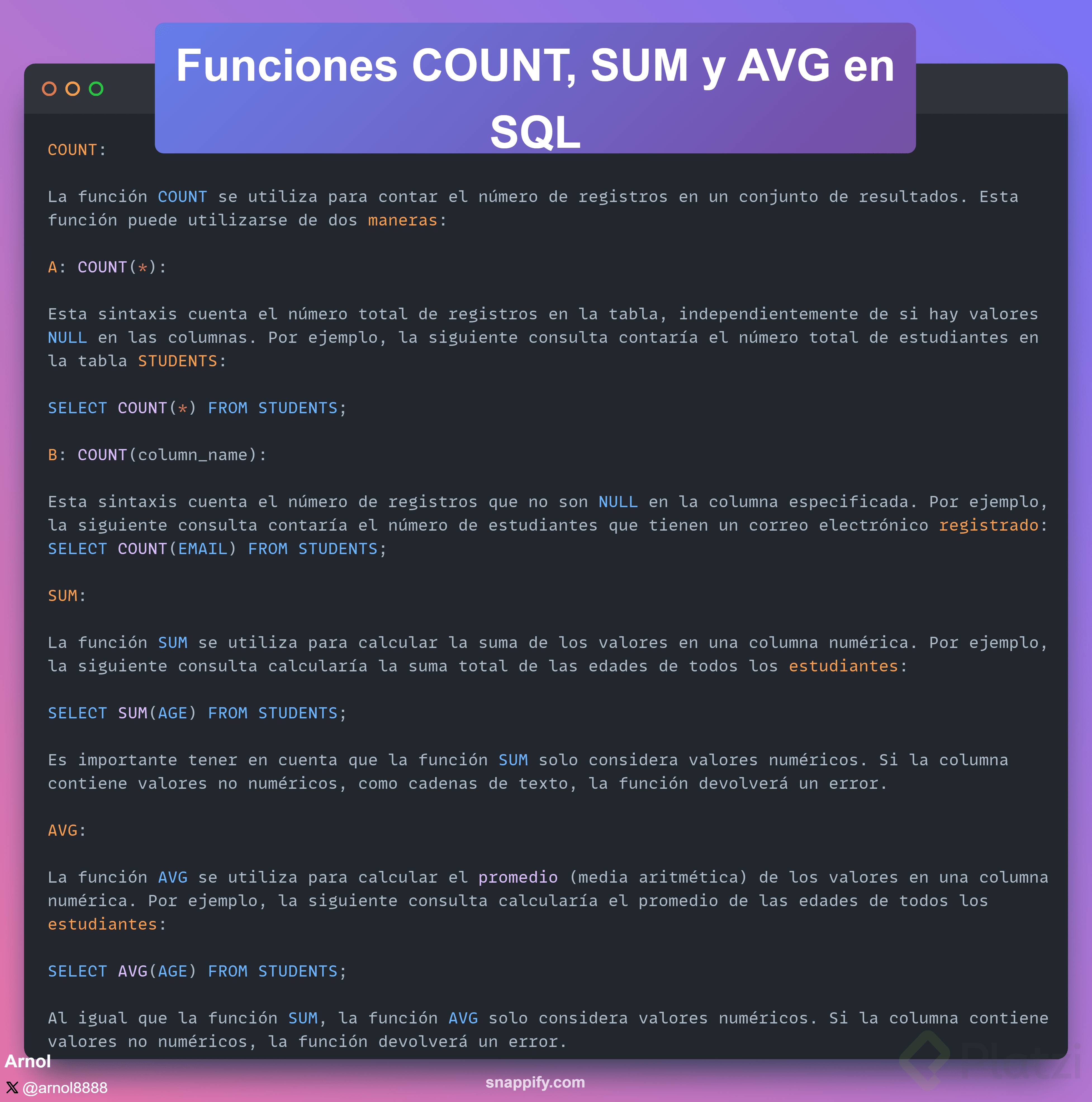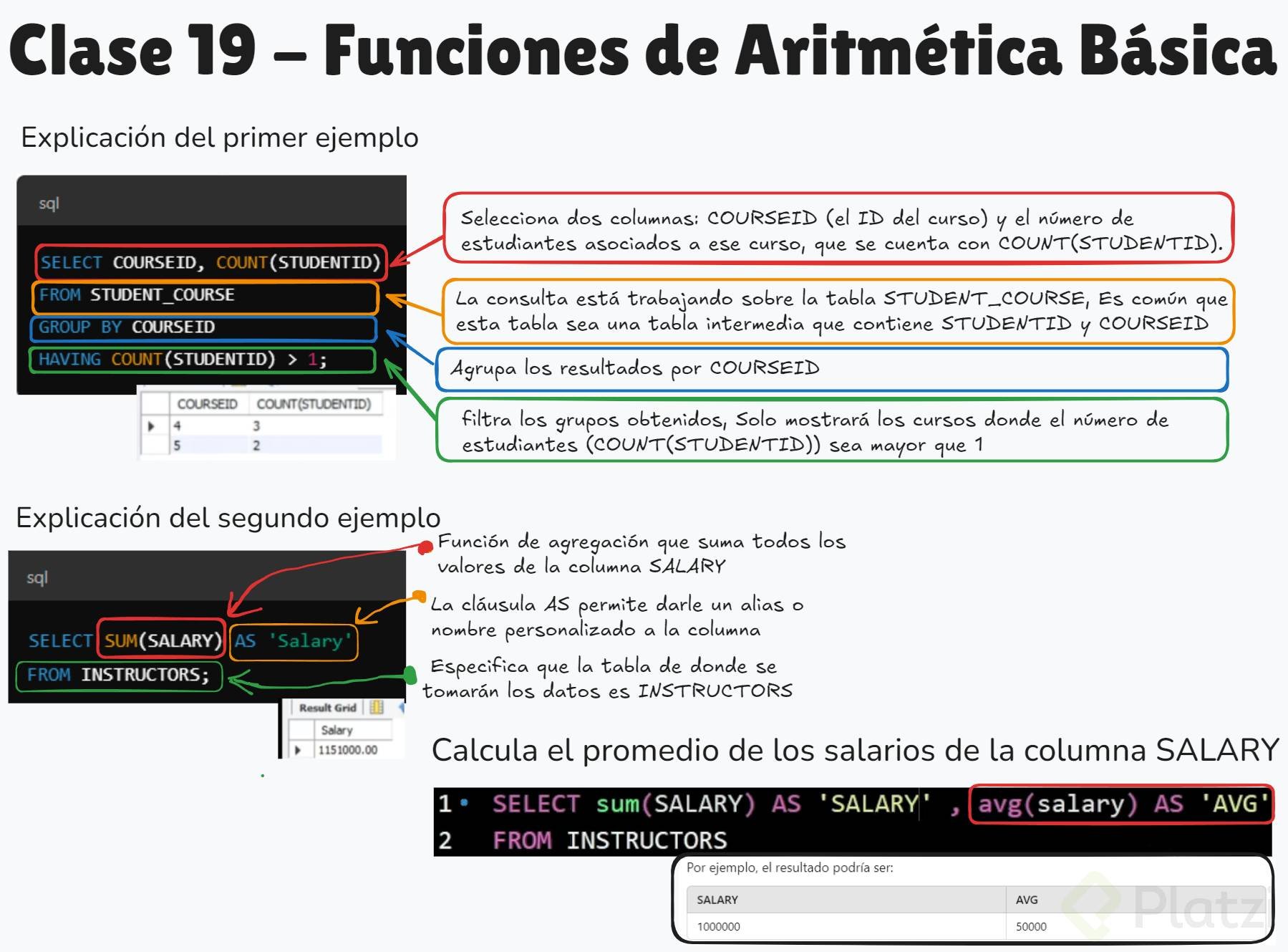 Funciones de Aritmética Básica en SQL (COUNT, SUM, AVG)