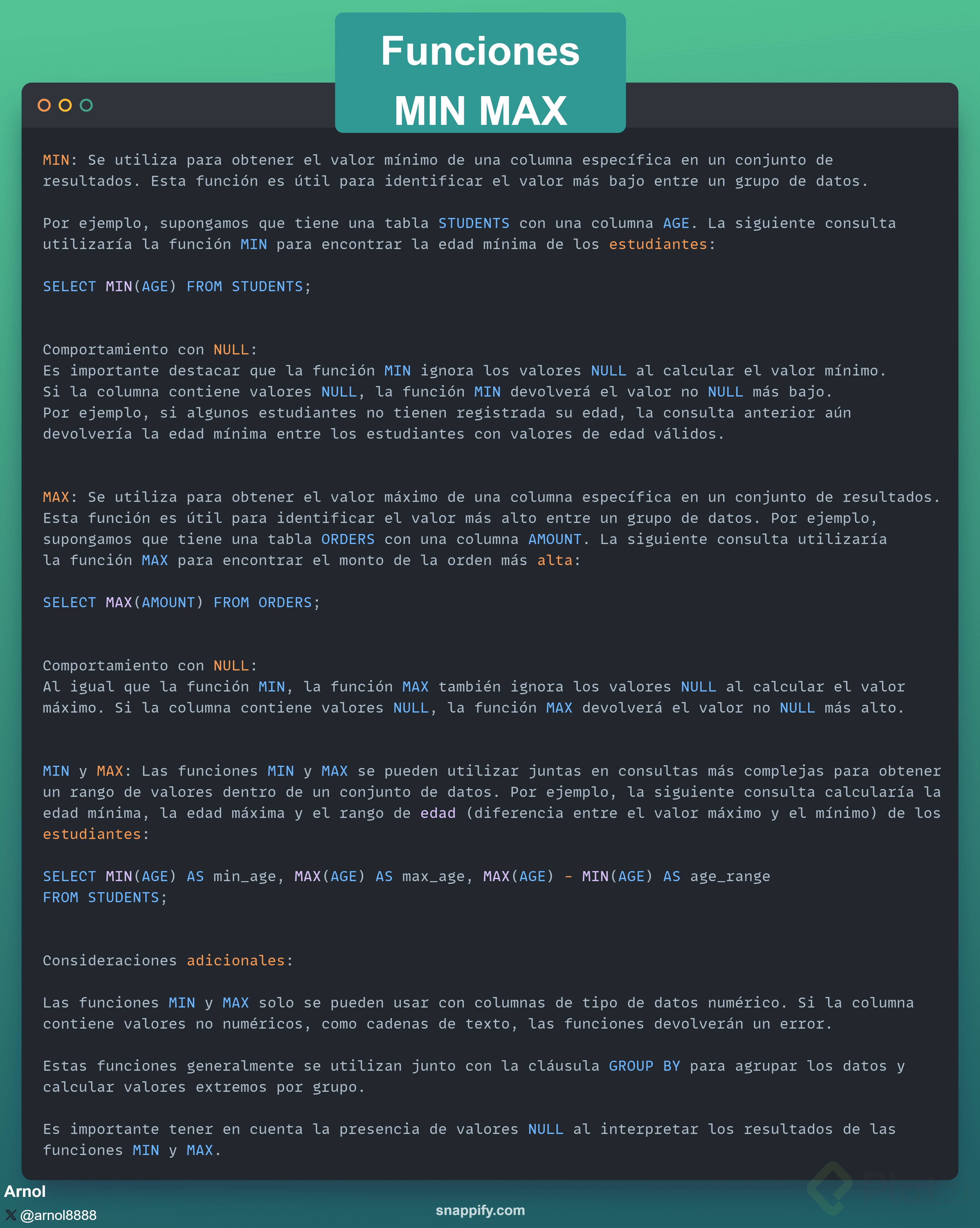 Funciones de Aritmética Básica en SQL (MIN, MAX)