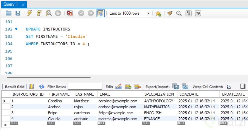 Esto te mostrará todas las filas en las que el nombre es ahora "Juana". Es una buena práctica comprobar siempre los resultados para garantizar que la actualización se haya implementado como se esperaba.