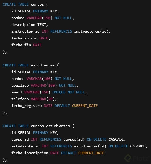 Esta declaración asegura que cada registro de curso tenga asignado un instructor existente en la tabla Instructores.