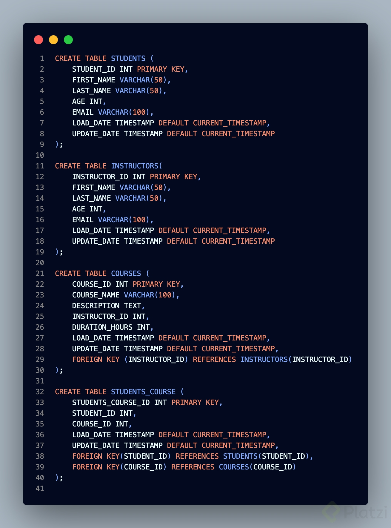 Te desafío a crear una tabla para instructores siguiendo estas pautas, y a compartir tus hallazgos o dudas sobre la sintaxis y tipos de datos en los comentarios. También, intenta crear una tabla de relación entre estudiantes y cursos, identificando cómo conectarás las claves foráneas, y revisa qué otros campos podrías incluir. Esta práctica fortalecerá tus habilidades y profundidad de conocimiento en gestión de bases de datos.