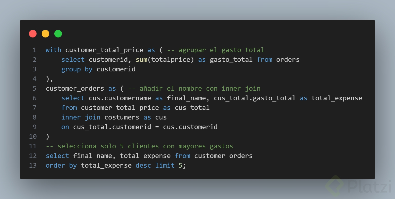 - Puedes referenciar múltiples subconsultas dentro de la consulta principal.