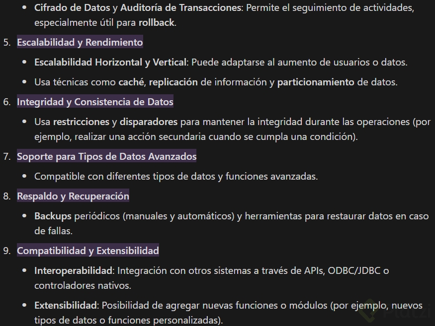 Entender estas funcionalidades y características te permitirá gestionar bases de datos de manera eficiente y segura, facilitando la interacción y manipulación de grandes volúmenes de información dentro de diferentes entornos tecnológicos.