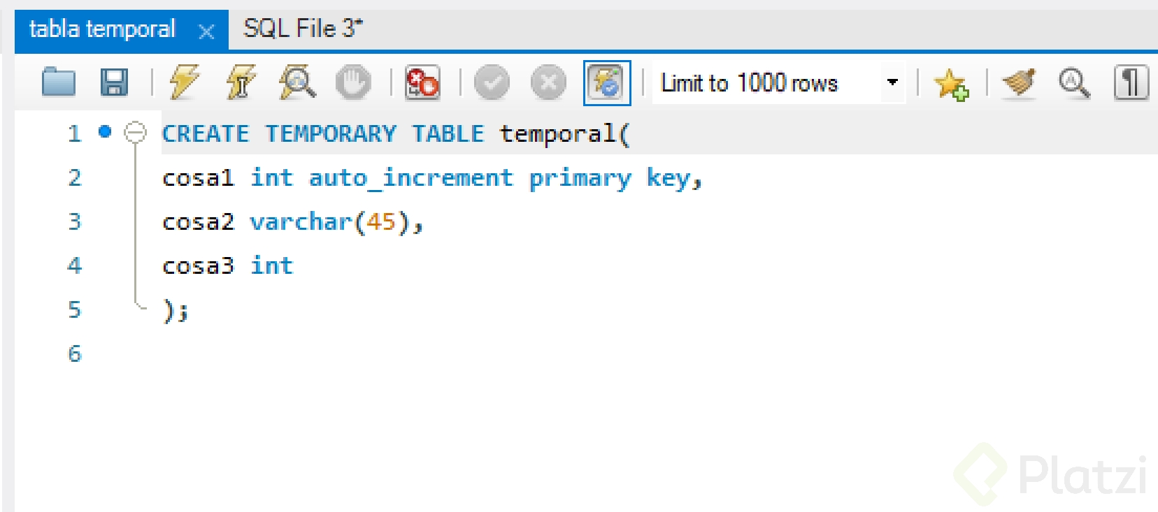 Para crear una vista temporal, se utiliza el siguiente comando SQL: