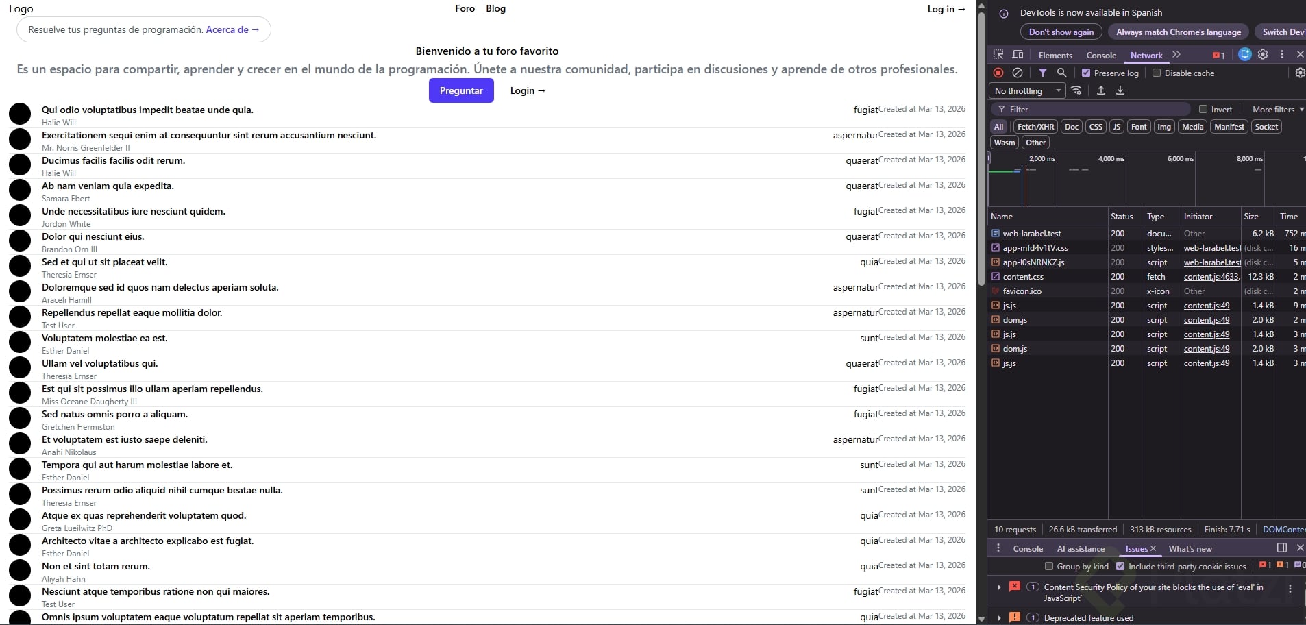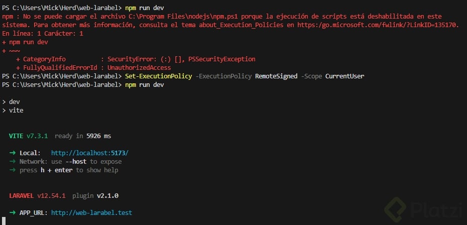 - Vite compila los archivos CSS (principalmente desde app.css de Tailwind) para actualizar cambios visuales inmediatamente.