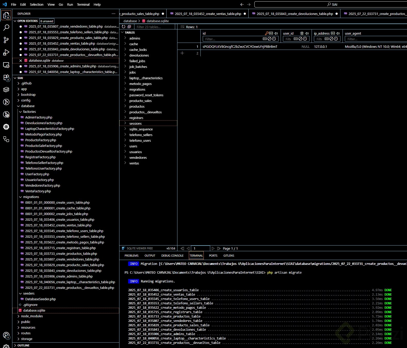 Este comando lee todos los archivos de migración y los ejecuta en un orden lógico definido por su creación. La ejecución exitosa crea tablas específicas en tu base de datos como categorías, preguntas, respuestas, comentarios y corazones, listas para interactuar en tu aplicación Laravel.