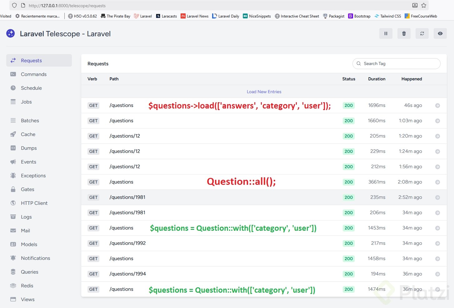 Así, Laravel carga dinámicamente el contenido solicitado según cada petición, mostrando efectivamente los detalles específicos de cada pregunta.