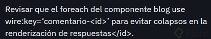 Los componentes Livewire pueden colapsar cuando se renderizan dentro de un ciclo for each sin especificar una clave única. Este problema se evidencia cuando acciones simples, como añadir comentarios o reaccionar con "corazones", generan errores en el sistema reactivo.