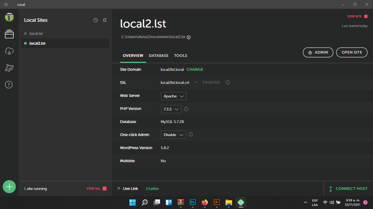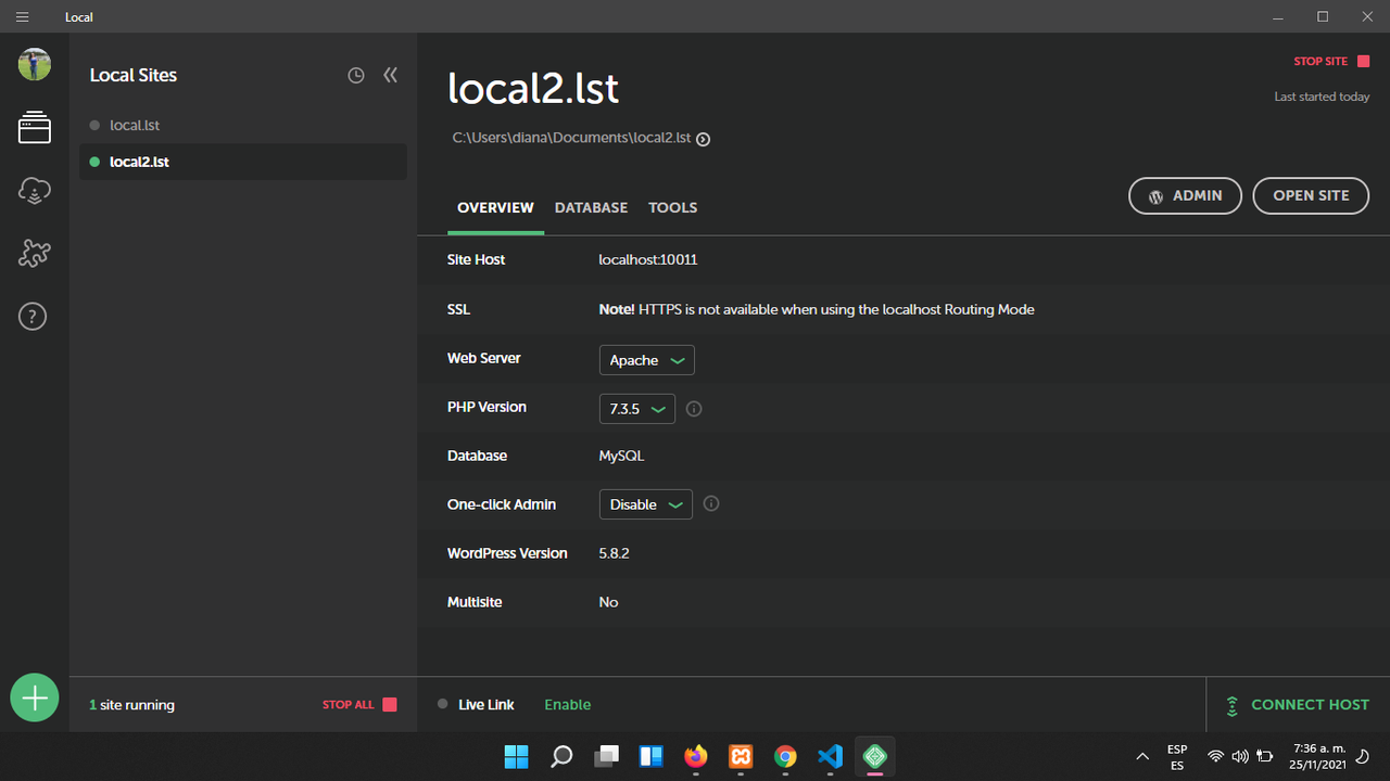 veo tambien que el site domain no me tomo como local2, y segui paso a paso la explicacion localhost:10011