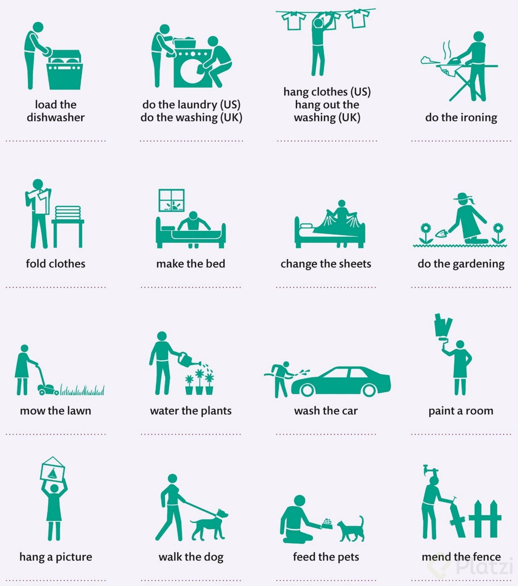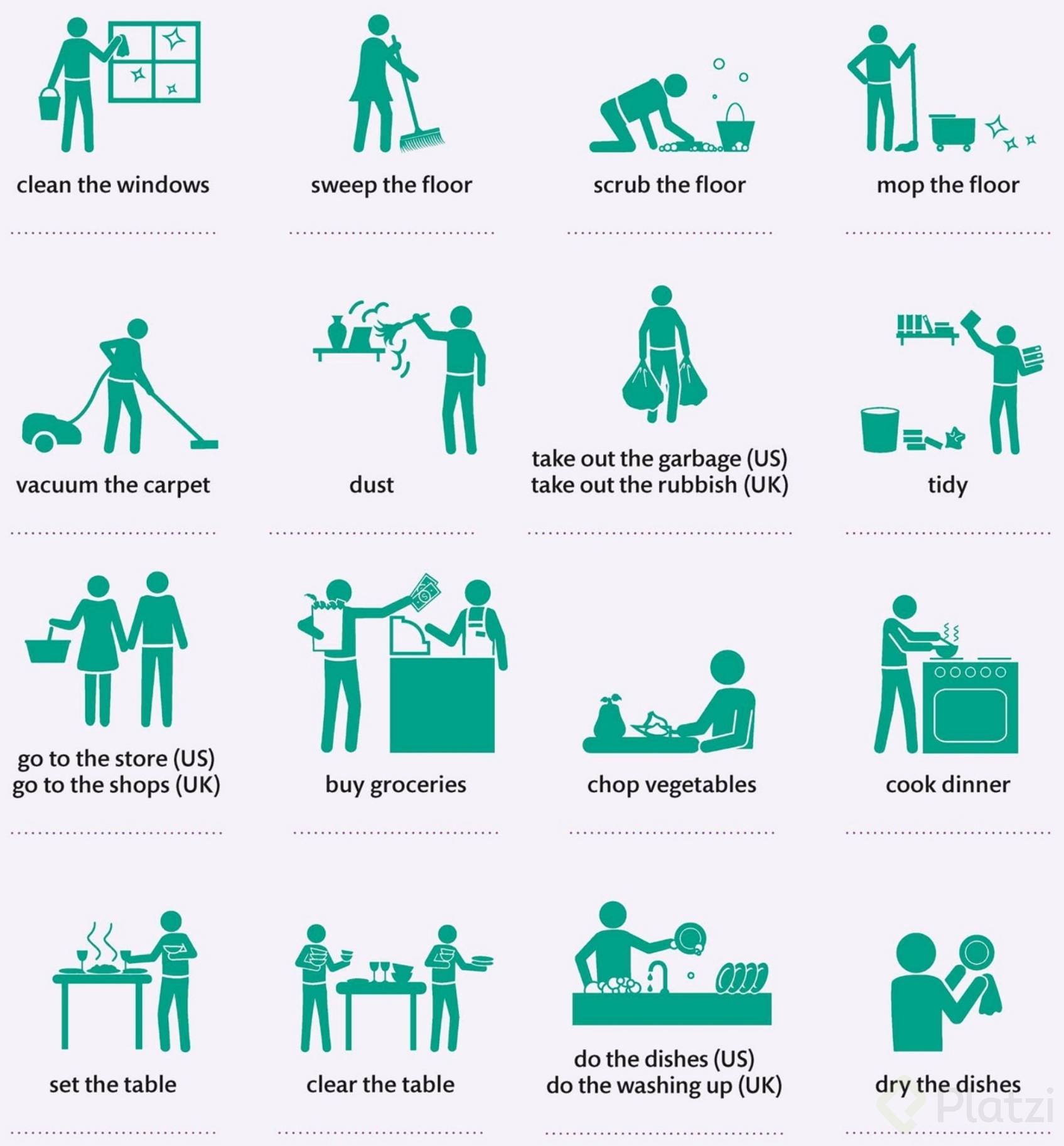 Vocabulario y Frases Imperativas para Tareas del Hogar