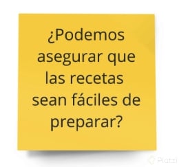 Por ejemplo, podríamos pensar que si nuestras recetas se ven muy complicadas de preparar, los clientes que no son expertos en cocina se sentirían desanimados y no se animarían a prepararlas. La pregunta entonces sería algo así: