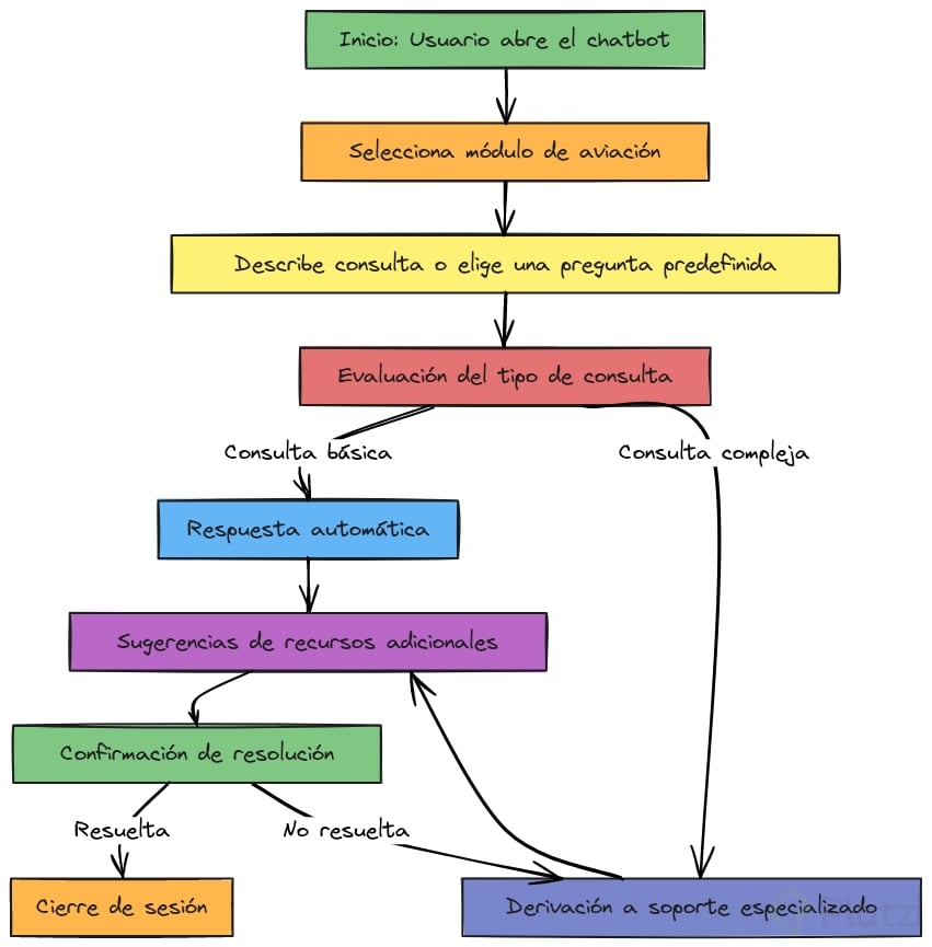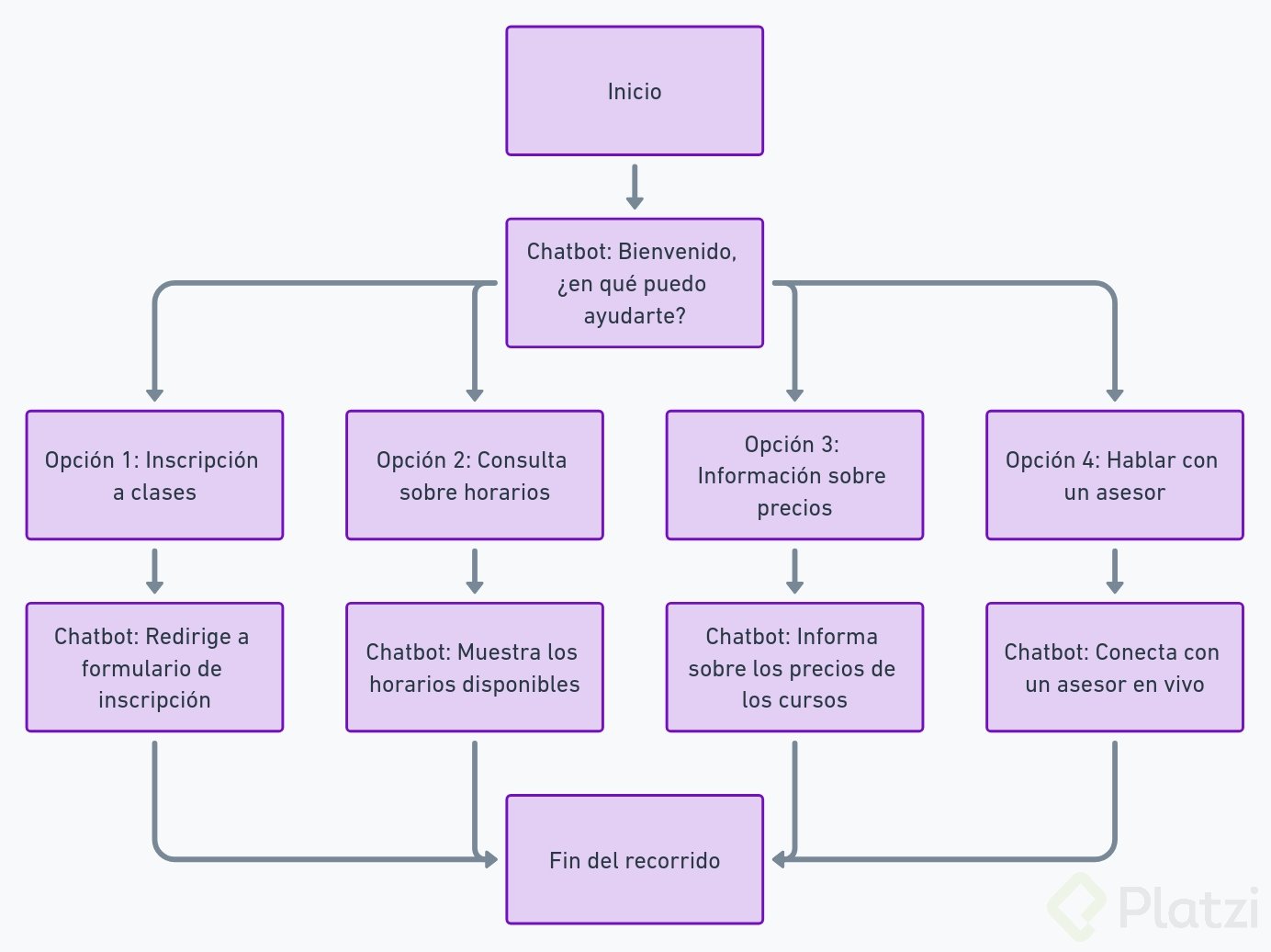 - Simplicidad y claridad: Los diagramas ofrecen un lienzo claro para conceptualizar y ajustar el diseño del chatbot.