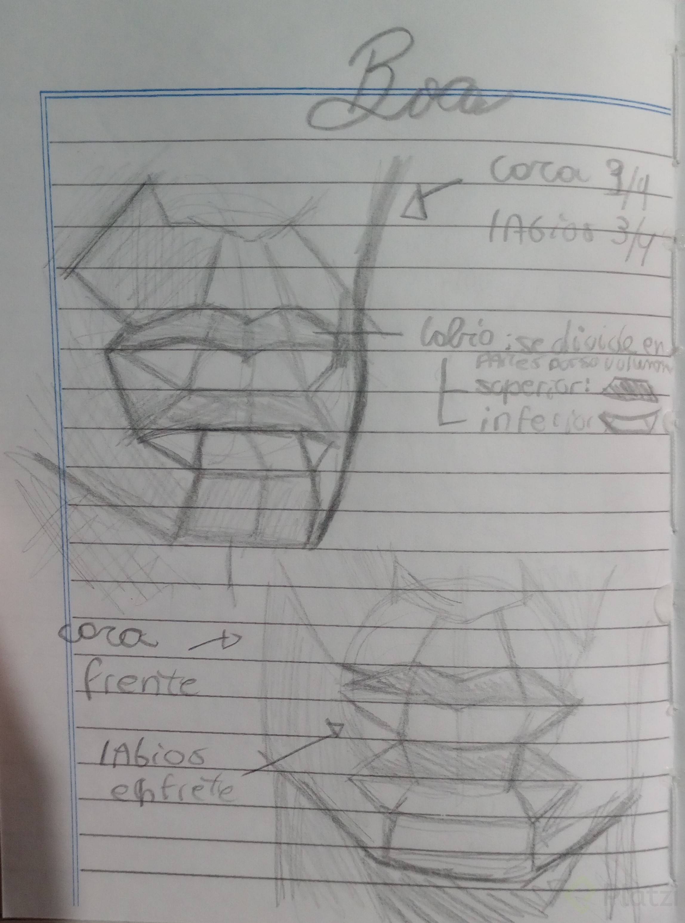 Labio superior: Puede tener un plano hacia atrás al unirse con el labio inferior, seguido de un volumen que sube. Esto es significativo al considerar sombras y luces; un lado podría recibir luz mientras el otro permanece en sombra.