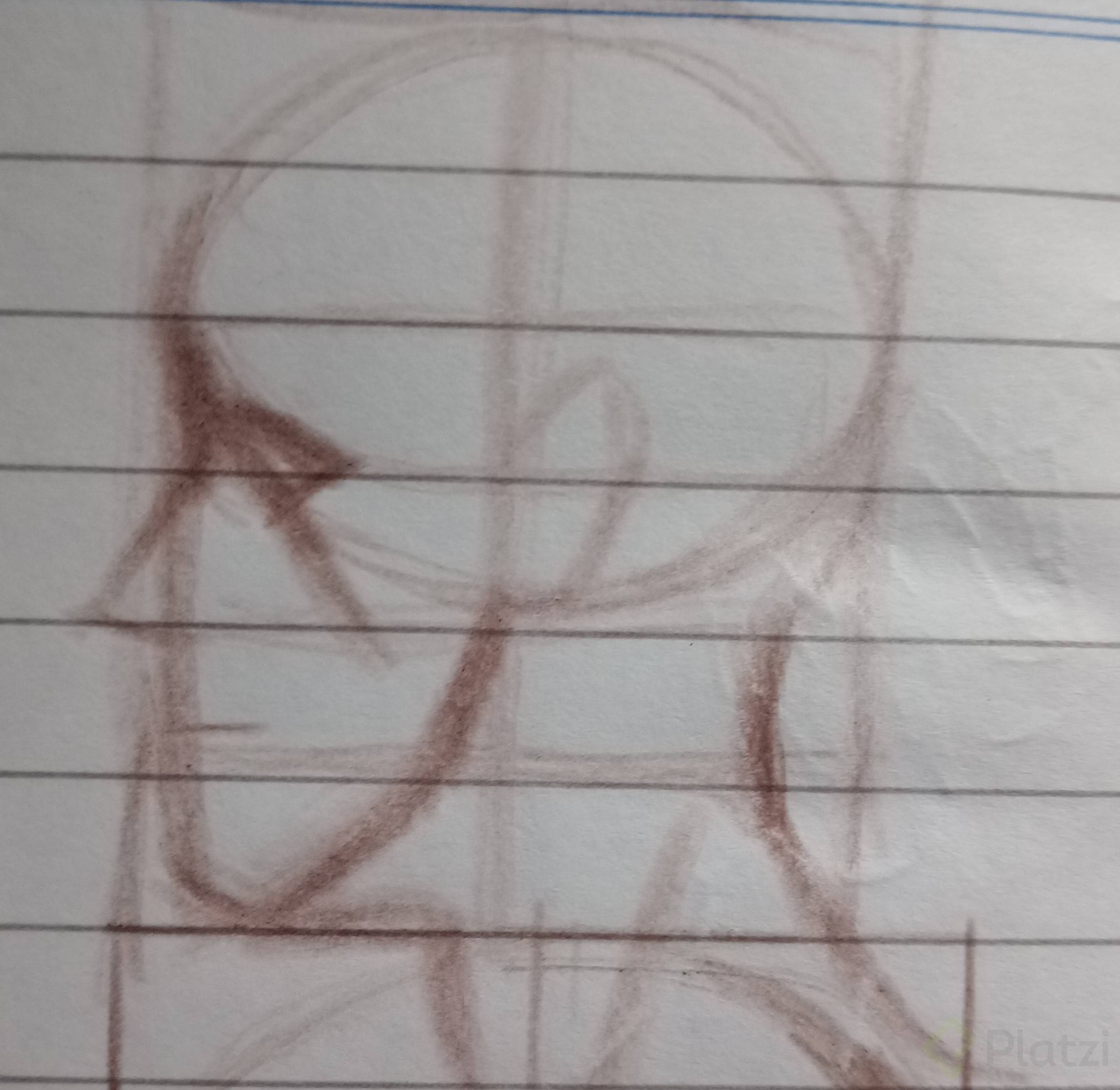 - Dibuja una elipse dentro de este espacio que llegue sólo hasta el primer tercio, marcando así la línea de la mandíbula.