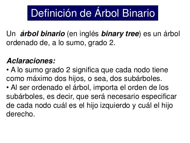 Un árbol binario es aquel donde tenemos un máximo de dos hijos por cada uno de los vértices.
