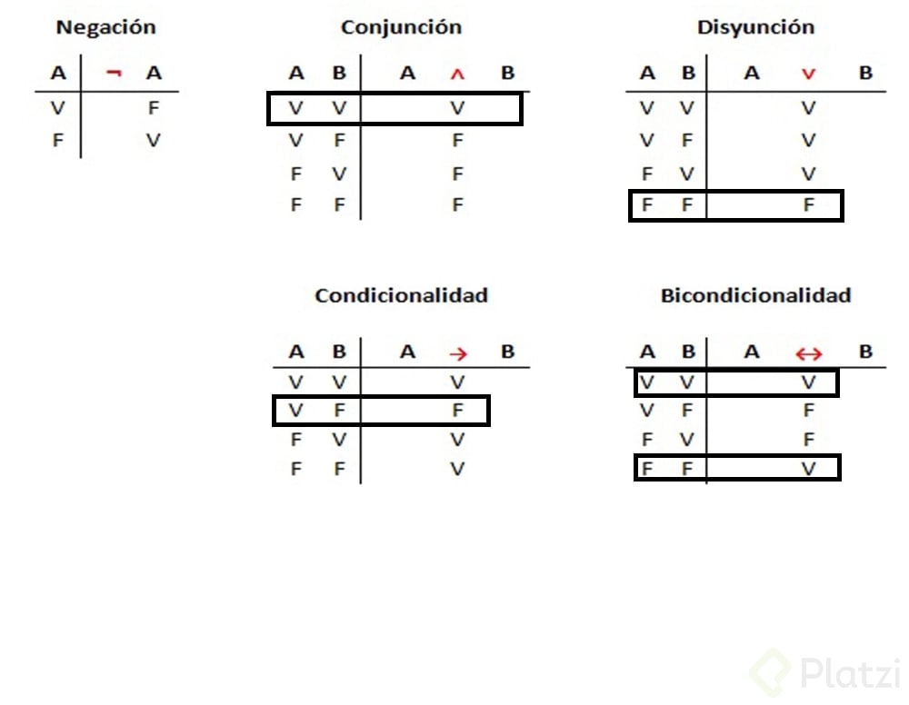 Tablas de verdad y conectores lógicos: conjunción, disyunción y más