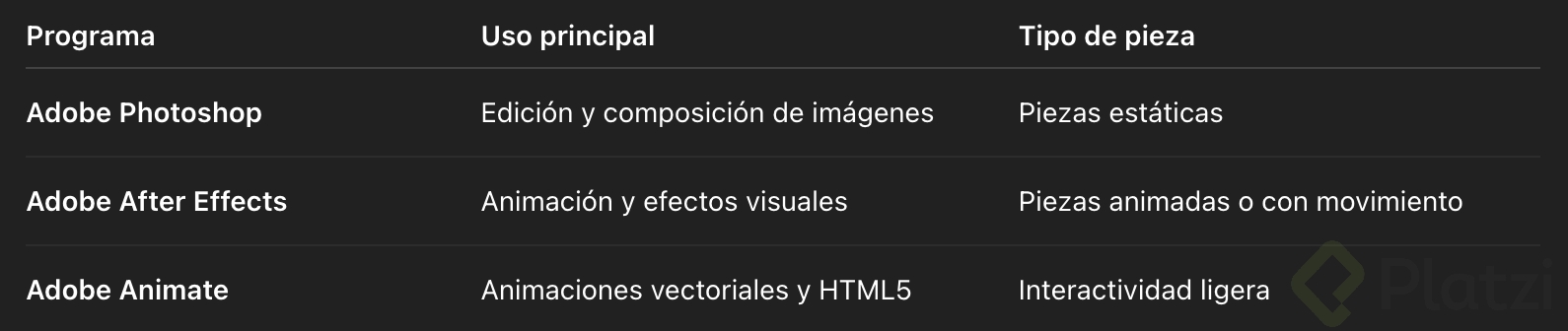 - Adobe After Effects y Adobe Animate: Perfectos para piezas animadas e interactivas.