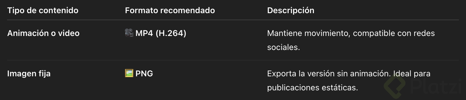 - Imagen fija: Si deseas solo la imagen, exporta en PNG.