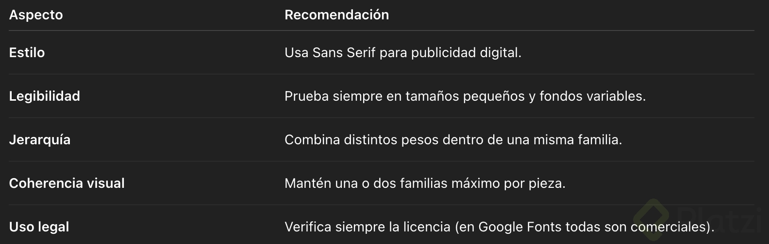 Consejo práctico: Siempre verifica que la tipografía sea legible en tamaños reducidos, especialmente si trabajas en diseños como anuncios publicitarios.