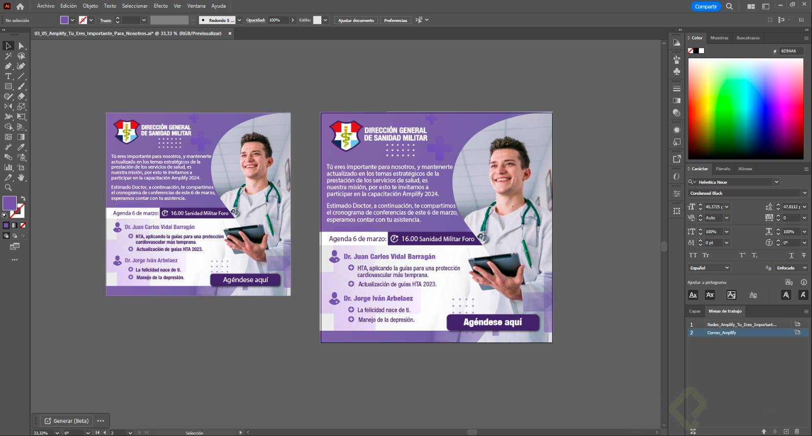 - Divide el póster en grupos lógicos (fondo, paleta de colores, grilla, textos, etc.).
