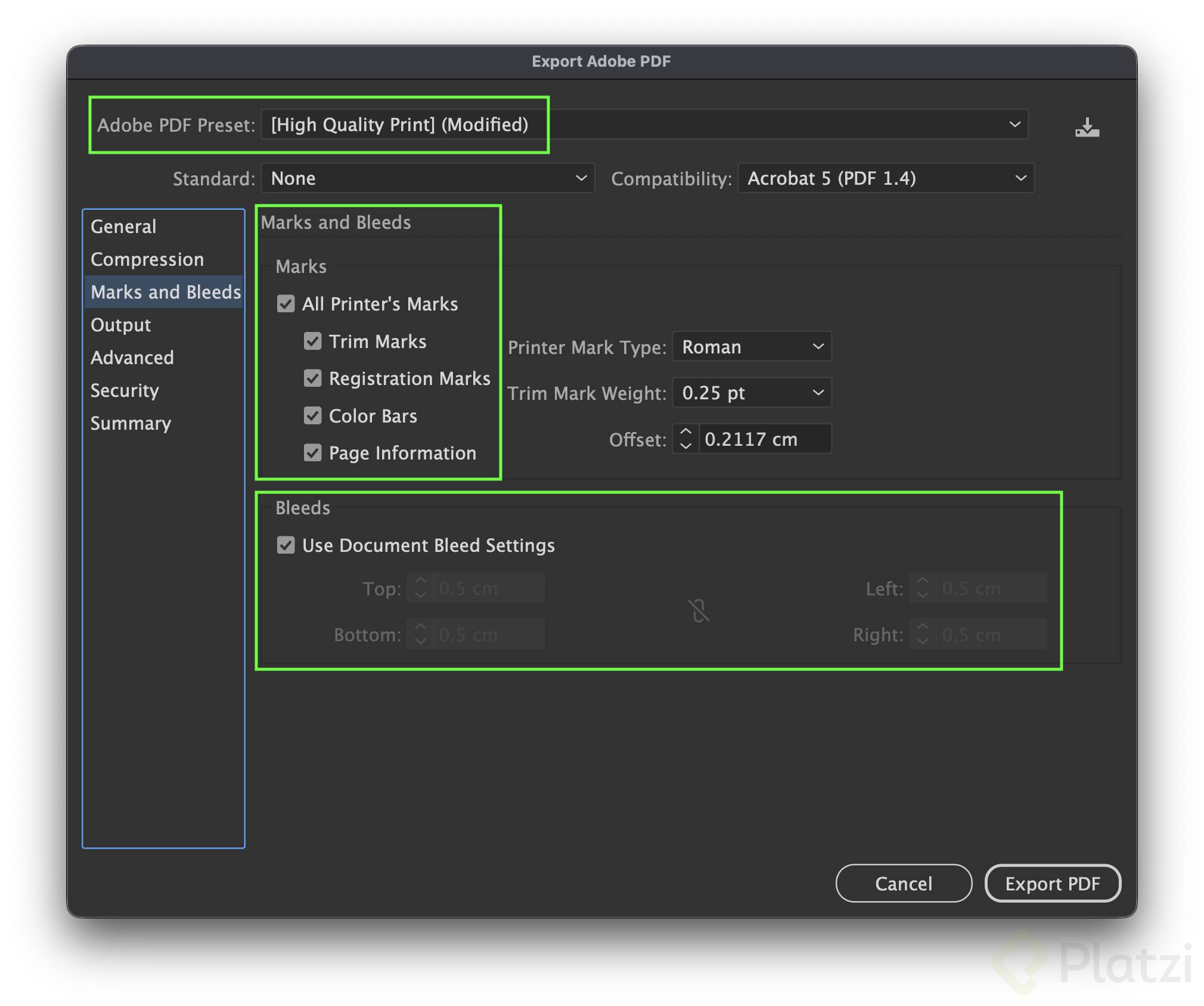 - Añade un sangrado de 5 mm para formatos medianos o pequeños.