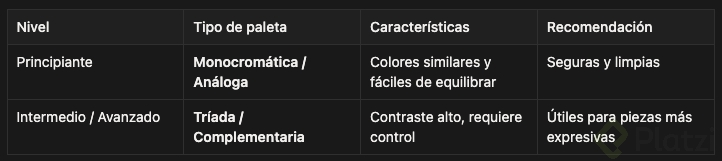 Además, las paletas muy vibrantes pueden ser difíciles de leer para personas con problemas de vista o dislexia.
