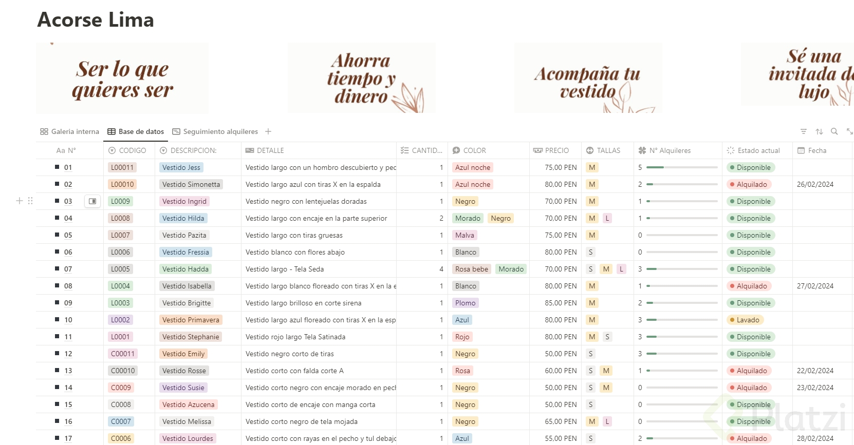 - Galería: Excelente para registros visuales, como álbumes de fotos o bases de datos de libros.