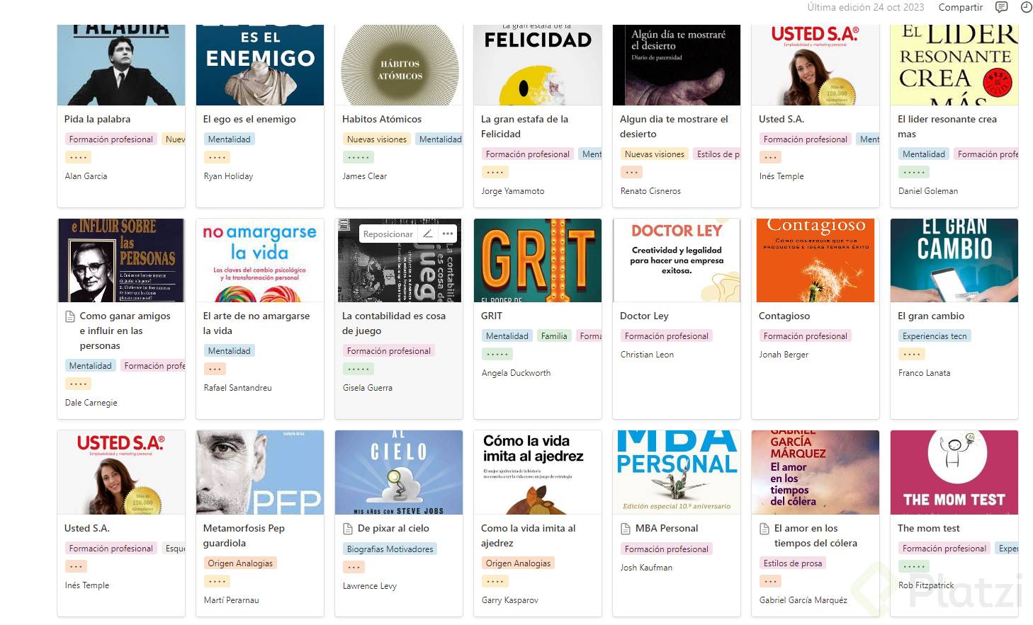 Una base de datos en modo galería en Notion es una forma de organizar visualmente la información en tarjetas que pueden incluir imágenes, textos, y otros detalles importantes. Este formato es especialmente atractivo para compartir contenido relacionado con libros, recetas, o cualquier tipo de coleccionable que se beneficie de un diseño visual.