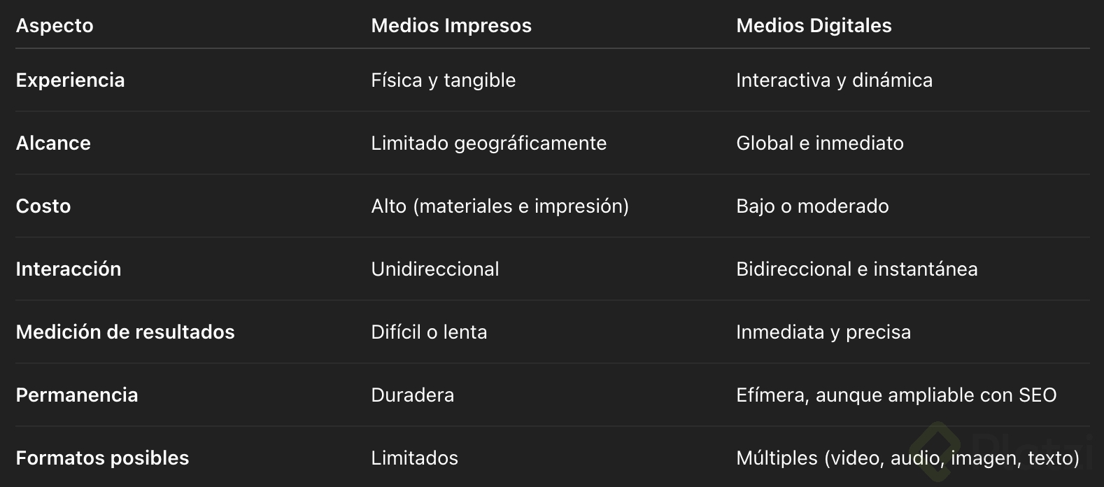 ¿Cuáles son las diferencias clave entre los medios impresos y digitales?