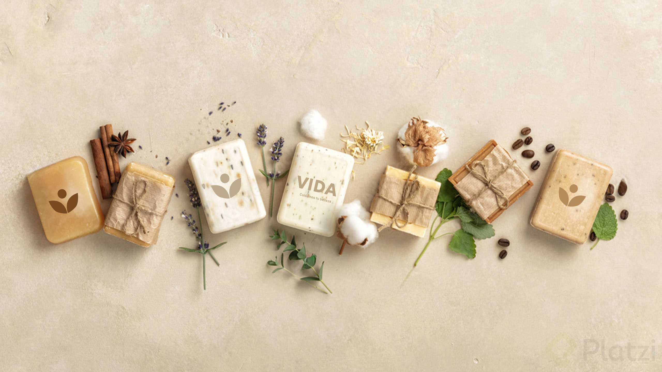 - Incorporar el logotipo: Diseñado previamente en Illustrator, copia y pega el logotipo en Photoshop para integrarlo en elementos como vasos o productos.