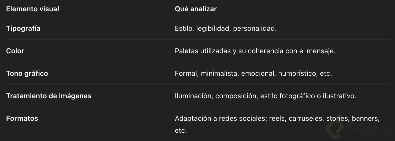 El benchmarking es una herramienta poderosa para comprender el panorama competitivo y encontrar inspiración visual. La clave es observar cómo se comunican otras marcas a nivel gráfico. Presta atención a los elementos como: