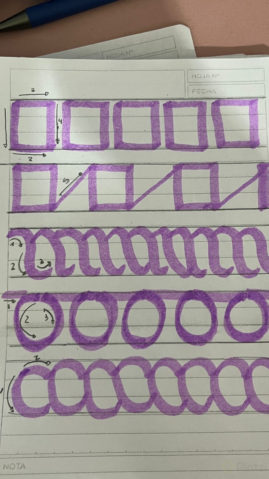 Este ejercicio parece sencillo, pero tiene complejidades que ayudan a mejorar la precisión caligráfica.