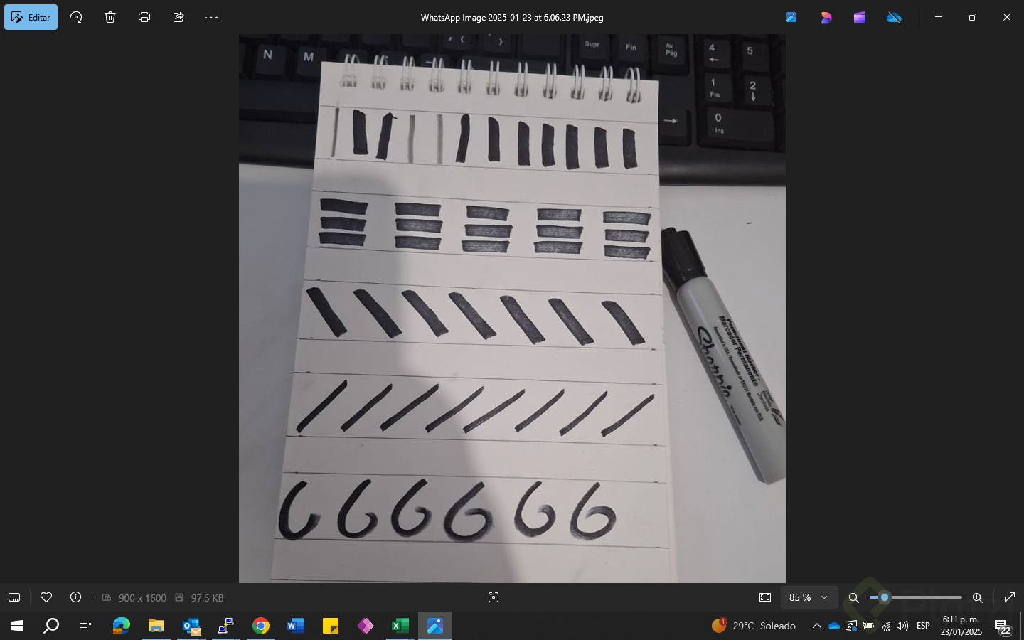 - Trazo diagonal (derecha a izquierda): Igual que el anterior, con sentido inverso.