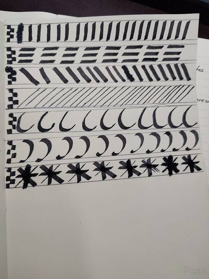 Dominar los trazos básicos es esencial antes de avanzar a estilos complejos. Practica los siguientes: