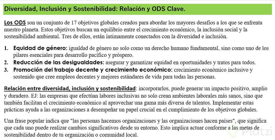 Continuar aprendiendo e implementando conocimientos sobre diversidad, inclusión y sostenibilidad amplía nuestras posibilidades de generar cambios significativos y duraderos. Embárcate en este viaje de aprendizaje y contribución constante.