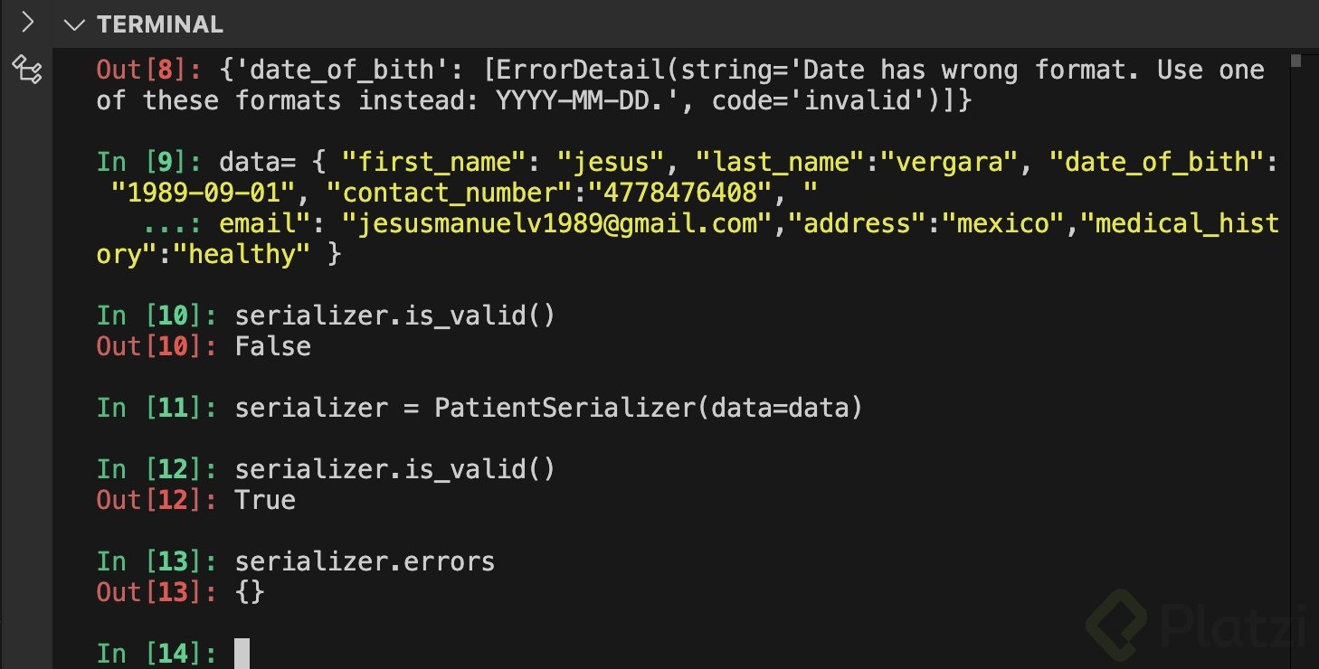 A continuación, un ejemplo de cómo crear un serializador para el modelo Patient:
