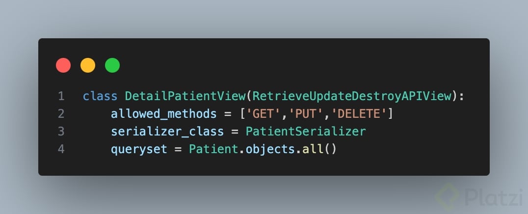 APIView, donde definimos los métodos comoget,post, odelete. - Esto nos permite organizar mejor el código y evitar los condicionales que usamos en las vistas basadas en funciones.