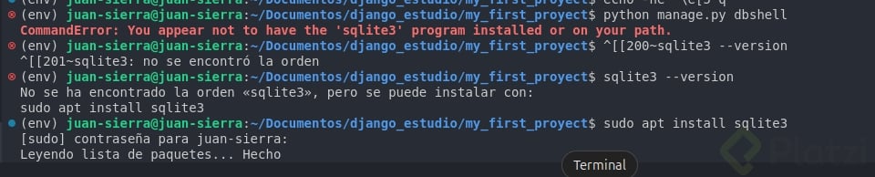 Para confirmar que los cambios se han realizado correctamente en la base de datos, se recomienda utilizar comandos SQL dentro de la línea de comandos de Django. Por ejemplo: