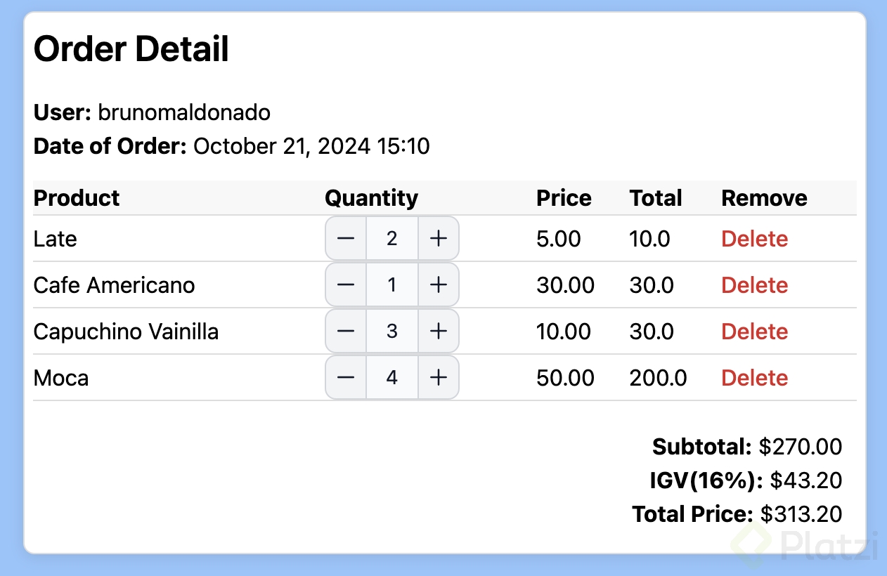 La interacción con el formulario es crucial, ya que define cómo el usuario agrega un producto a una orden. Para ello: