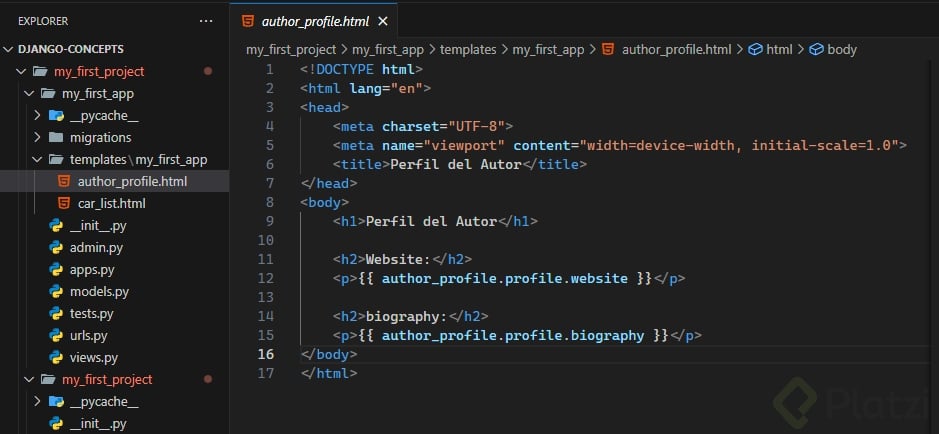 Modelo, Vista y Plantilla en Django: Creación y Conexión Básica