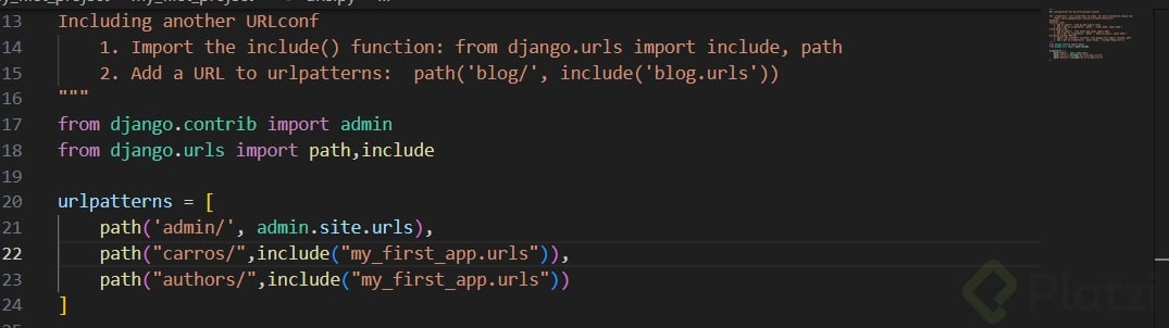- Modificar el archivo de URLs del proyecto: Agrega un nuevo