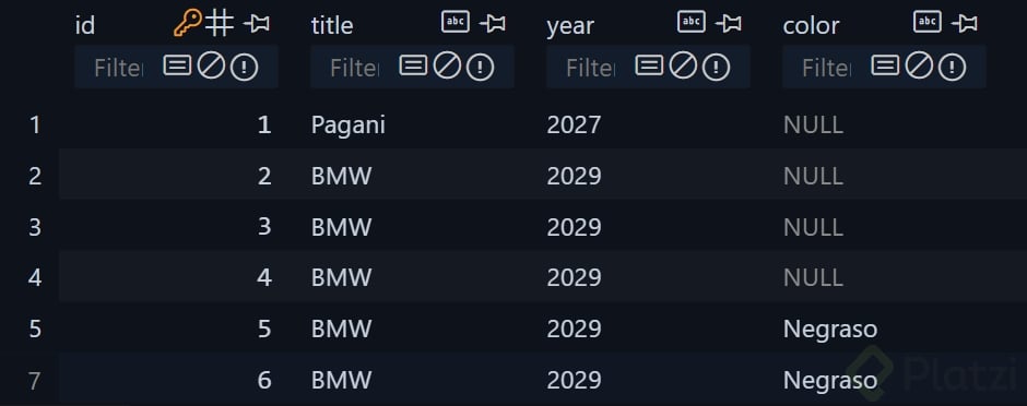 Añadir un nuevo atributo, como el color del carro, sigue los mismos pasos: