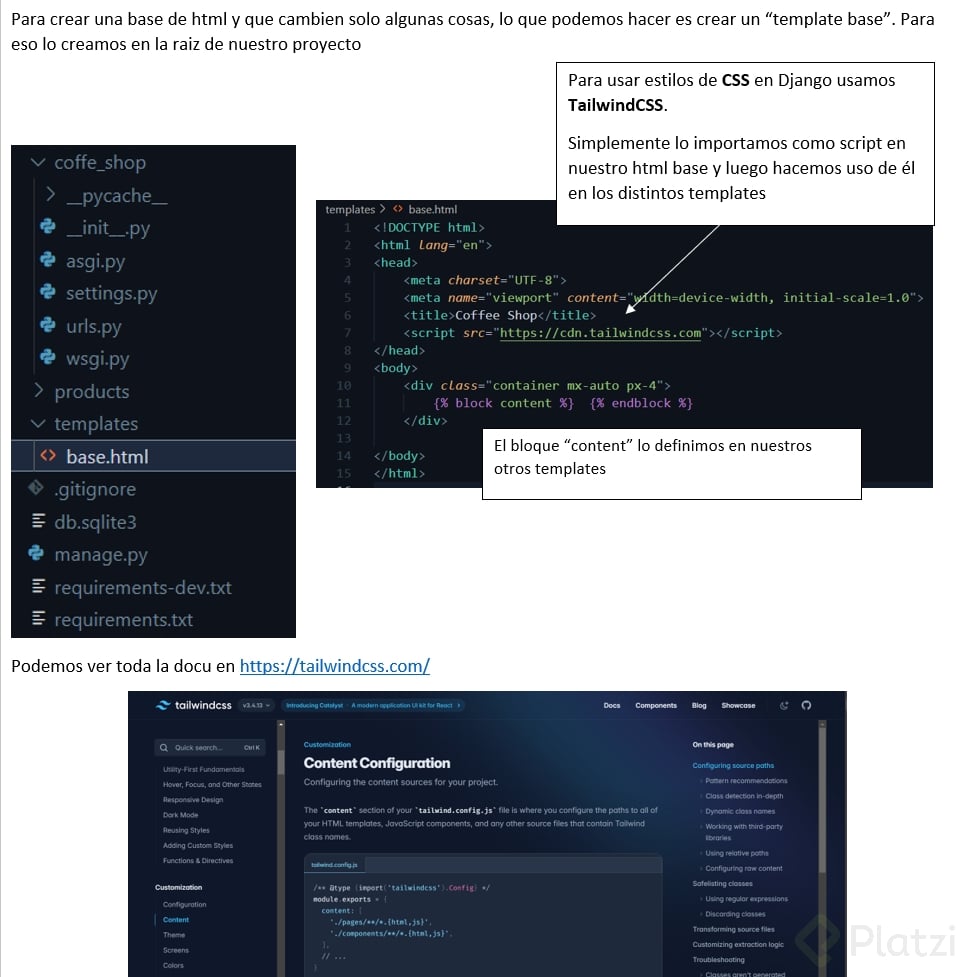 Para agregar estilos, se integró Tailwind CSS usando un CDN. Se colocó el código del CDN en base.html y se añadió un ejemplo para verificar su funcionamiento. Se utilizan clases de Tailwind para mejorar la apariencia y organización de los elementos en el HTML.