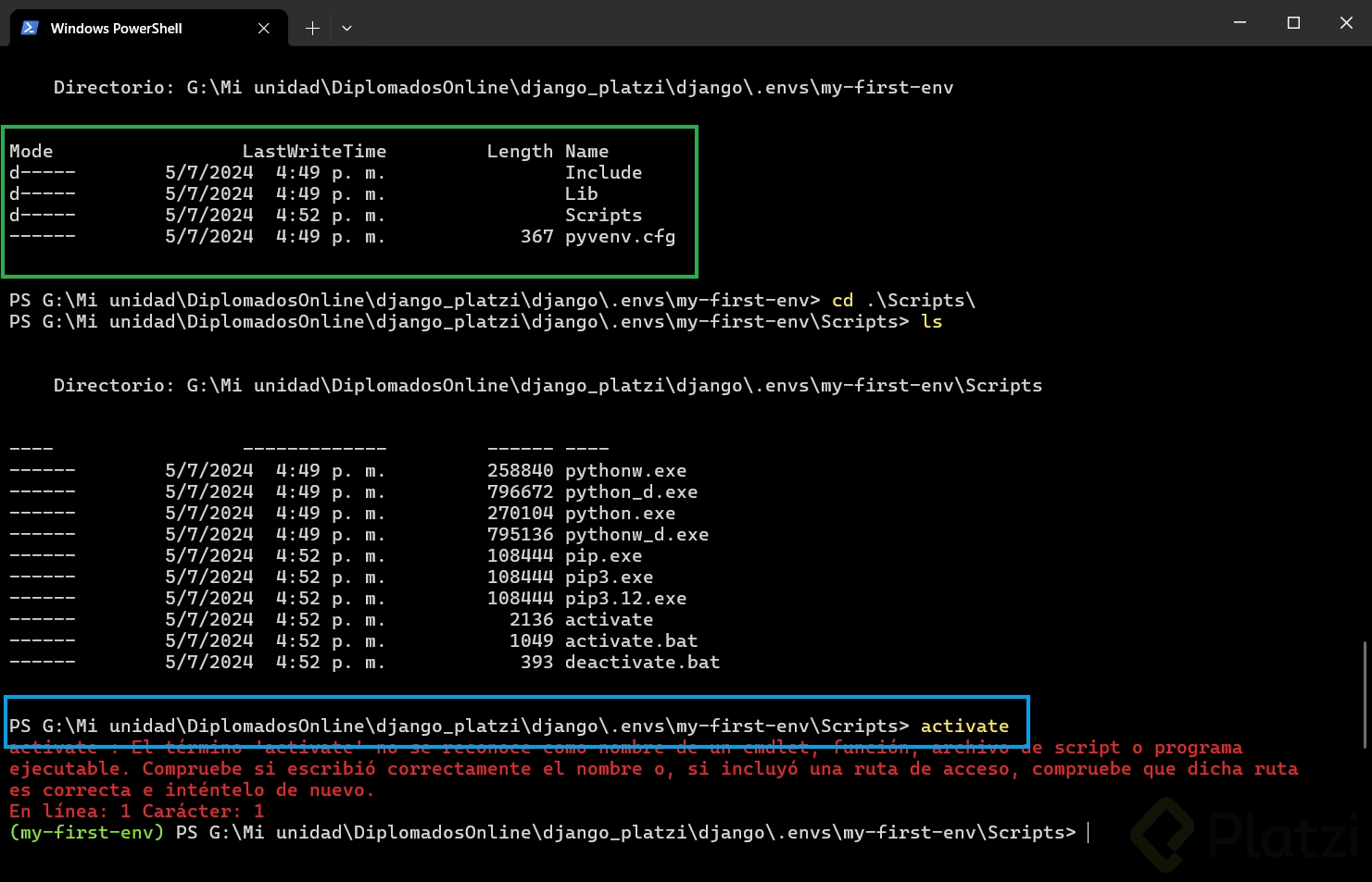 Notarás que el nombre del entorno virtual aparece en la terminal, indicando que está activo.