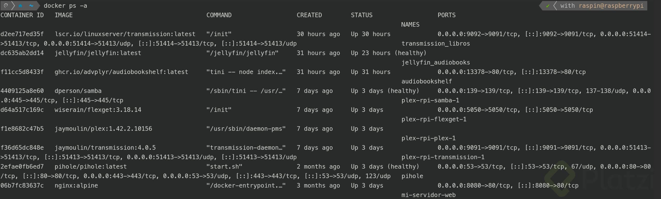 docker ps -a: muestra todos los contenedores creados, incluidos aquellos que ya no están activos.