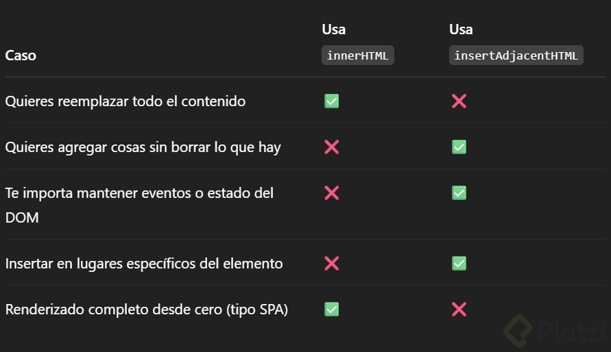 Manipulación del DOM con innerHTML e InsertAdjacentHTML